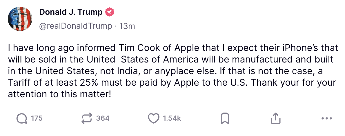18 06-24 13:48特朗普威胁对苹果征收关税