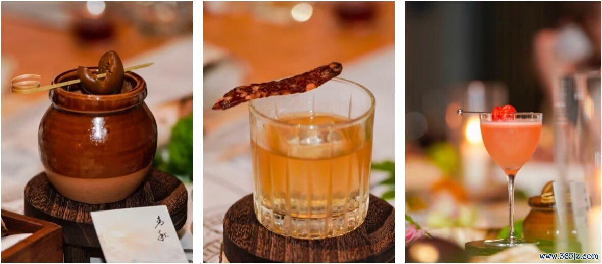大研安缦调酒师从云南山川和独特风物中汲取灵感,三款特调勾勒出高原的辽阔与深邃。“山林逸趣”取雨季深山的干巴菌与青花椒,融于金酒,入口如漫步雾霭缭绕的密林,野性与清新并存。“青秋”的灵感来自文昌宫门前守望百年的古梅树,梅子浸入青稞白酒,与威士忌的醇烈交织,酸甜之后,是古城骤雨般的清透。“普洱茶尼格罗尼”则将古树熟普与金巴利相融,茶香缠绕橙皮气息,苦尽甘来之间,是晒茶场的暖阳与茶马古道的回响。